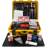 fiber optic connectors. The kit includes various hand tools as well as