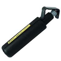 hese Miller Fiber Optic Cable Slitters are manually operated cutting devices that enable you to achieve fast, safe and precise jacket removal of PE, PVC and rubber jacket. These Fiber Optic Cable Slitters are ideal for slitting and stripping fiber optic cable, providing circumferential, longitudinal and spiral cuts for easy removal of the fiber optic cable jacket. These fiber optic cable slitters have a spring-loaded cable brace that holds the fiber optic cable to the blade for easy, controlled cutting. The stripper fits comfortably in your hand and provides you with a firm grip during use. The slitting blades are designed for long life and replacement blades are available. Two models are available. The F1-114 strips cables from 4.5mm to 29mm diameter. The F1-158 strips cables from 19mm to 40mm diameter. Also see our other fiber optic tools and supplies for fiber optic splicing and termination. These include fiber optic cleavers, fusion splicers and mechanical splices. Cable preparation supplies include fiber optic stripping tools, alcohol wipes, Kim Wipes, icky pic removers, solvents, and more.